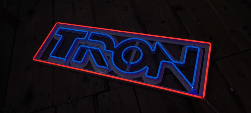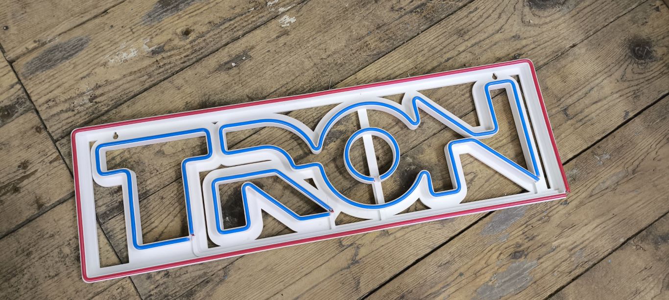 Ein Kumpel hat mir die DC12V LED SMD 2835 Streifen mit 120 LEDs empfohlen – "Die leuchten wie ein außerirdischer Discokugel!", schwärmte er. Ich hab's ausprobiert: Hammer! Hell, effizient und super flexibel. Leider hab ich's initially verbockt und nur je 1 Meter in Rot und Blau bestellt. Ein Meter? Das reicht für 'ne Weihnachtskerze, nicht für epische Projekte. "Was bau ich damit?", dachte ich und starrte frustriert auf die Spule. Nicht viel – außer vielleicht 'ne Mini-Party für meine Schraubenzieher. Aber dann kam die Eingebung: Der alte Tron-Film von 1982! Perfekt für Neon-Vibes. Ich hab mich für das ikonische Logo entschieden. Größe? Zu klein wäre langweilig, zu groß würde die Werkstatt zum Lightcycle-Parkplatz. Also: 650 mm breit. Genial!